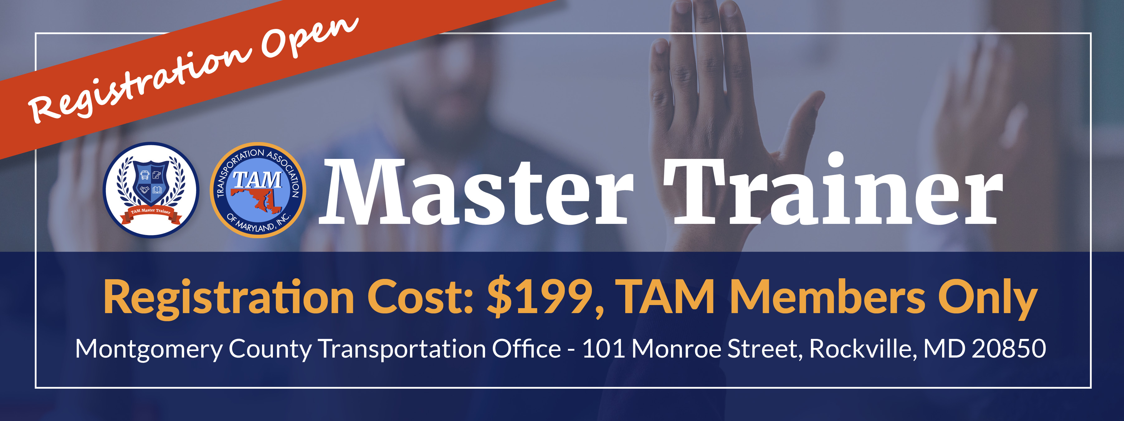 TAM’s Master Trainer Program is a Train-the-Trainer course that teaches best practices for training transit bus and paratransit operators. Through a combination of self-paced study and a three-day instructor-led course incorporating hands-on training, Master Trainer Graduates will exit the program with the knowledge and skills necessary to coach their colleagues to be safe and effective bus operators. The Master Trainer Program is exclusively designed for community transportation employees whose job responsibilities include training. We recommend utilizing TAPTCO's tips on how to select a trainer. Those who successfully obtain and certify as Master Trainers will be eligible for a discounted registration (10% off) at all future TAM training events (including the annual conference) as well as special, Master Trainer only events at events like the annual conference. Date/Time: February 10,11,12